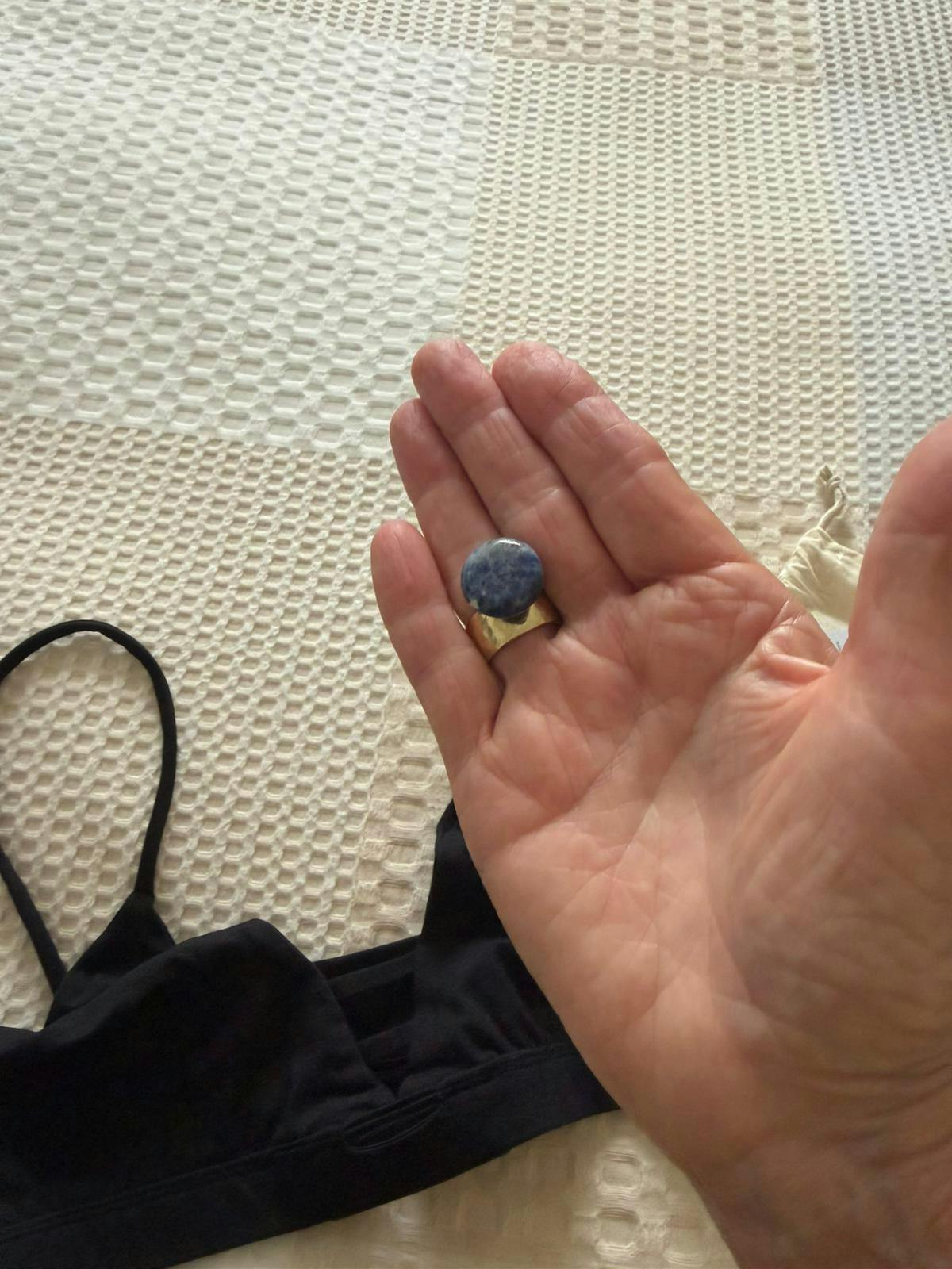 This Sodalite pocket crystal is intentionally sized to fit inside Alma’s sustainable, wire-free bralettes - helping you carry truth, intuition, and calm energy close to you throughout the day.